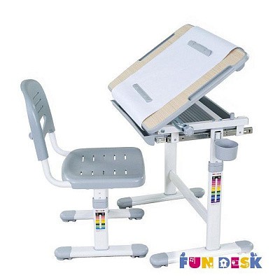 «ФанДеск» могут регулировать высоту парты под рост ребенка, а столешница может изменять угол наклона. Каждую модель можно оборудовать дополнительными аксессуарами. Парта «FunDesk» имеет множество ящиков для хранения канцелярских принадлежностей и тетрадей.