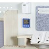 Часы-гигрометр с функцией измерения температуры и влажности в детской комнате. Кроме того, возможно установить будильник. Часы закреплены на металлическую стенку полки. Передняя панель доступна в голубом и розовом цвете, и прекрасно гармонирует со сменным декором парты.