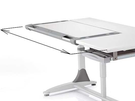 Передний пенал органайзер для быстрого доступа к ручкам, фломастерам, и прочей мелочи, оборудован съемными линейками, которые так же служат подставками под руки, а боковые пеналы удержат ручки и фломастеры даже при наклоне столешницы.