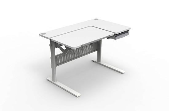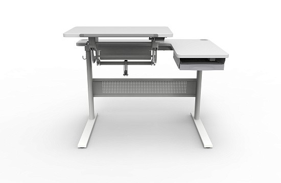 Для регулировки высоты стола используется высокотехнологичный запатентованный механизм. За одну секунду вы можете настроить его от 58 до 91 см, что подходит как для маленьких детей, так и для взрослого человека. Ребенок может заниматься за этим столом даже стоя.