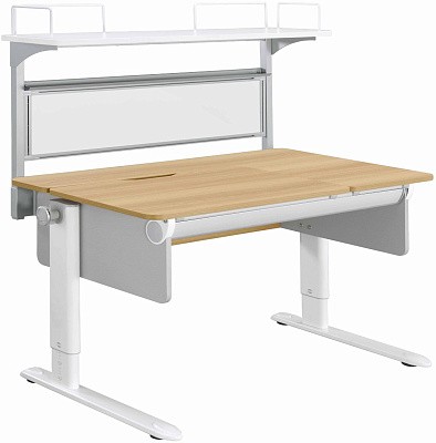 Coobee CB-513 – является отличным расширением вспомогательного пространства на партах Singbee. Стеллаж имеет в своей конструкции большую книжную полку размером 93х30 см., с 4 ограничителями для книг. Магнитно-маркерная доска, позволяет держать перед глазами важные напоминания, расписание уроков. В пластиковый лоток над доской можно убрать маркеры и магниты. Крепление стеллажа осуществляется в штатные места на парте.
