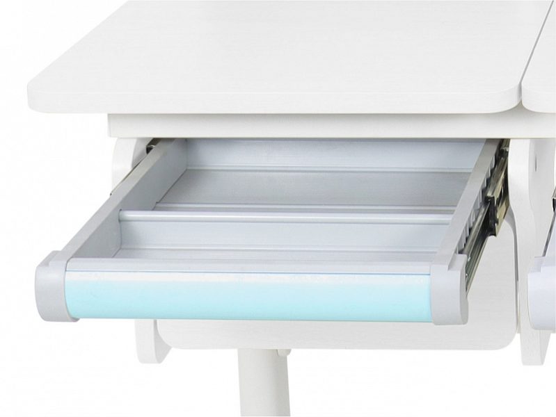 В выдвижном ящике и небольшом пенале над ним удобно хранить тетради и мелкие школьные канцелярские принадлежности.