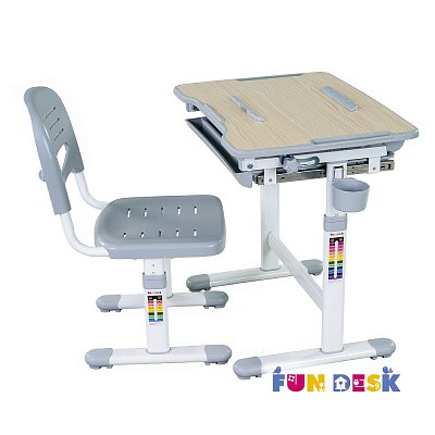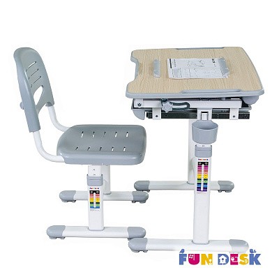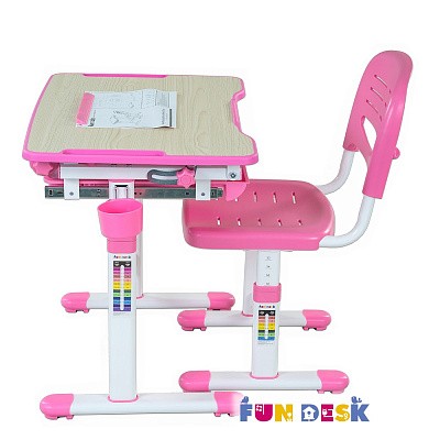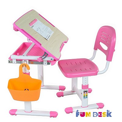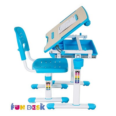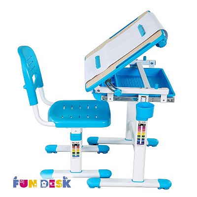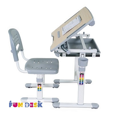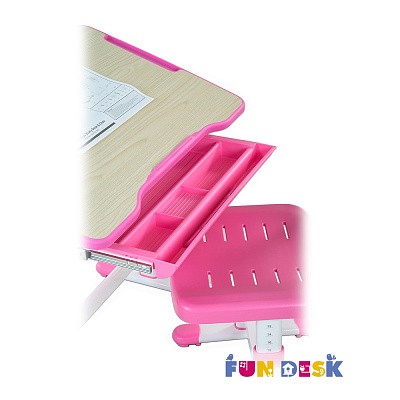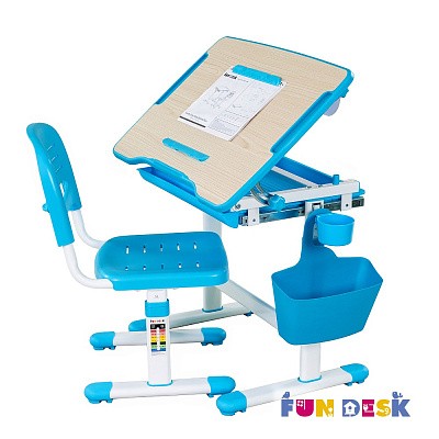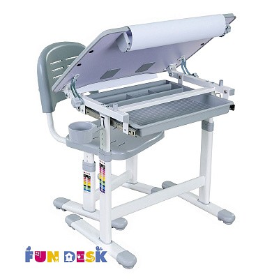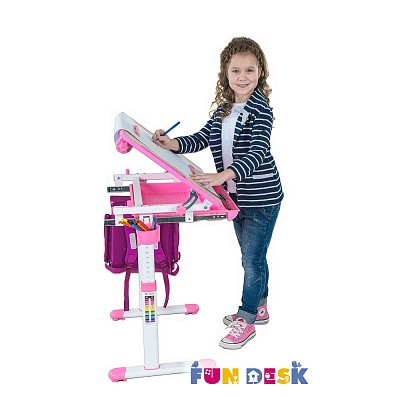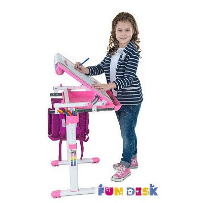 «ФанДеск» могут регулировать высоту парты под рост ребенка, а столешница может изменять угол наклона. Каждую модель можно оборудовать дополнительными аксессуарами. Парта «FunDesk» имеет множество ящиков для хранения канцелярских принадлежностей и тетрадей.