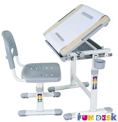 «ФанДеск» могут регулировать высоту парты под рост ребенка, а столешница может изменять угол наклона. Каждую модель можно оборудовать дополнительными аксессуарами. Парта «FunDesk» имеет множество ящиков для хранения канцелярских принадлежностей и тетрадей.