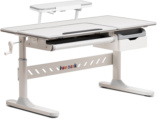 «ФанДеск» могут регулировать высоту парты под рост ребенка, а столешница может изменять угол наклона. Каждую модель можно оборудовать дополнительными аксессуарами. Парта «FunDesk» имеет множество ящиков для хранения канцелярских принадлежностей и тетрадей.