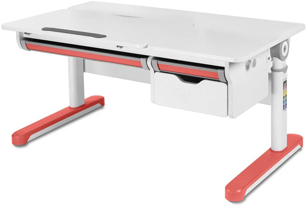 С помощью съемного рычага можно быстро и просто отрегулировать парту по высоте. Также в комплекте поставки присутствует специальная наклейка от производителя с подробной таблицей соотношения роста ребенка, и подходящей для него высоты столешницы.