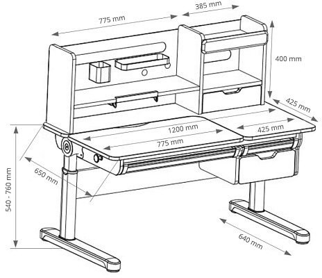 «ФанДеск» могут регулировать высоту парты под рост ребенка, а столешница может изменять угол наклона. Каждую модель можно оборудовать дополнительными аксессуарами. Парта «FunDesk» имеет множество ящиков для хранения канцелярских принадлежностей и тетрадей.