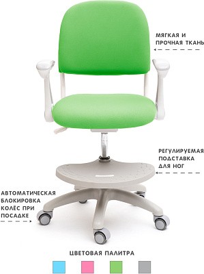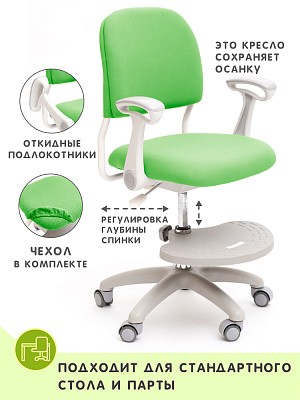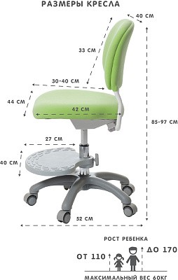 Растущее кресло Holto-15 подходит как для растущих парт, так и для обычных столов. Регулировка высоты кресла и глубины сиденья позволят подобрать наиболее удобное положение для Вашего ребенка, которое сохранит осанку в правильном положении во время занятий, а регулируемая подставка для ног обеспечит их положение под углом 90 градусов. Кресло подойдет для школьников ростом от 110 до 170 см. Колеса блокируются при посадке человека выше 20 кг.