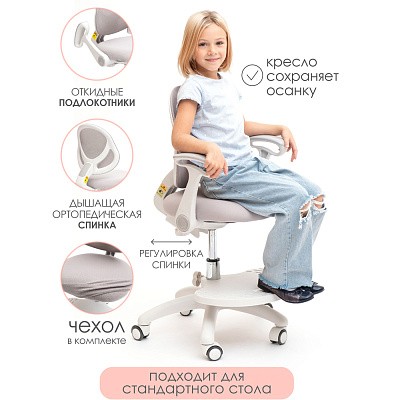Детское кресло Holto-36 для детей от 3 лет и до подросткового возраста. Подходит для роста от 110 до 170 см. Можно использовать как с растущей партой, так и с обычной. Изменяя глубину спинки и высоту сидения, Вы подберете наиболее комфортное положение для ребенка. Колеса имеют функцию стоп-вращения при посадке в кресло человека свыше 25 кг. Малыш не будет отвлекаться от уроков, катаясь на кресле. Кресло имеет регулируемую подставку для ног, которую можно снять при необходимости.