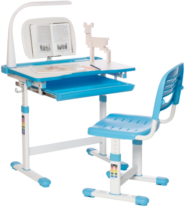 Комплект растущей детской мебели Holto-11: парта с регулируемой подставкой для книг, usb-лампа и стул обеспечит ребенку хорошую правильную осанку на начальную школу и дошкольную подготовку. Наклон столешницы изменяется от 0 до 40 градусов. Парту возможно превратить в мольберт, что позволит ребенку рисовать в положении стоя. Ограничительный бортик не даст бумаги упасть. Стол оснащен крючком для портфеля, пеналом, выдвижным органайзером и подстаканником для порядка на рабочем месте. Комплект подходит для роста от 110 до 170 см. Максимальная нагрузка 60 кг. Ножки оснащены регуляторами высоты для компенсации неровностей пола.