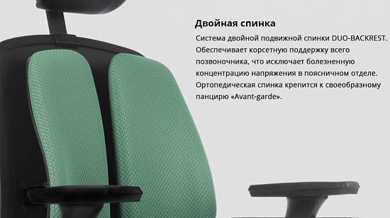 Система двойной спинки крепится к своеобразному панцирю «Avant-garde».
