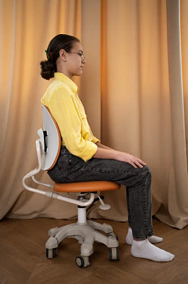 Эргономичное кресло, для поддержания правильной осанки. Эргономичная двухлепестковая спинка, на специальном креплении, создает условие для того, чтобы сесть криво или "боком" ребенку было неудобно. Спинка работает как корректор осанки. Не создает давления на позвоночный столб. Подходит для детей ростом от 95 см до 170 см.