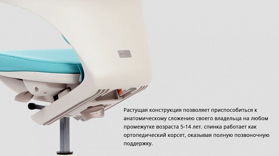 Высокая спинка имеет ярко выраженный ортопедический обхват, помогает пользователю добиться правильного расположения всех отделов позвоночника и поясницы. Она сделана с применением технологии Duoflex, регулируется по росту, в глубину, что позволяет персонализировать ее под особенности телосложения в период интенсивного роста.