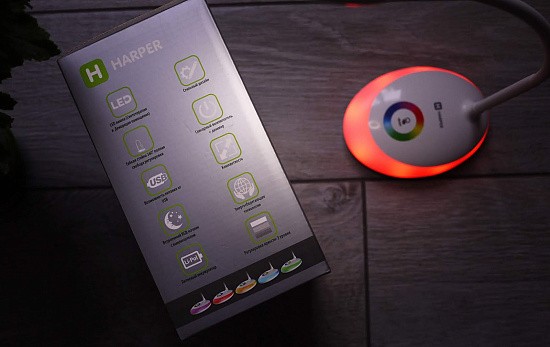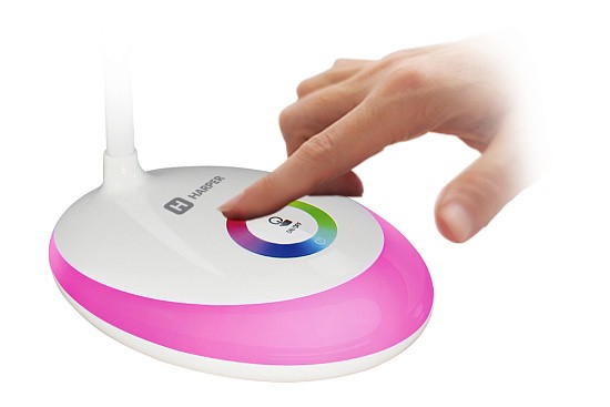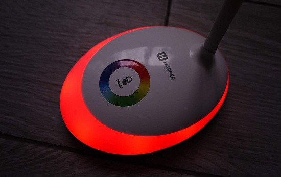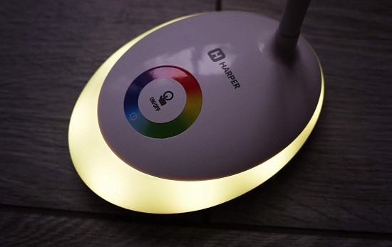 Прикосновение к цветному кругу включает подсветку (ночник) желаемого цвета цвета. RGB подсветка 256 цветов. Ночник может работать как отдельно, так и совместно с лампой.