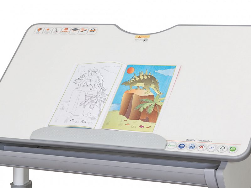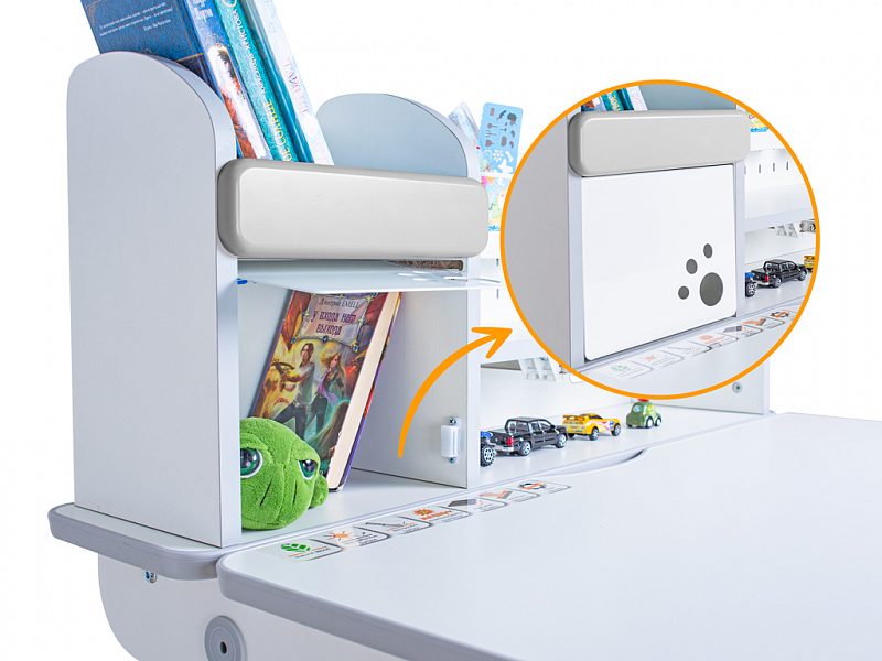 Наличие съемного прорезиненного барьера на столешнице предотвращает скатывание предметов во время выполнения домашнего задания.