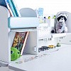 Помимо полок у надстройки есть очень удобный шкафчик, в котором ребенок может хранить свои вещи. Дверца шкафчика открывается наверх, а для удобства – на дверце есть специальные отверстия для пальцев. Теперь все школьные принадлежности точно будут в порядке.