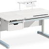 Вместительный выдвижной органайзер расположен под столешницей. В нем удобно хранить ручки и тетрадки, которыми ребенок пользуется наиболее часто.
