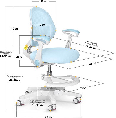 Подставка для ног из прочного пластика регулируется по высоте и вращается вокруг своей оси. Благодаря наличию регулируемой подставки кресло подходит к стандартным, нерегулируемым столам. Нейлоновые колесики плавно скользят по полу, не повреждая его. Движение кресла блокируется при нагрузке от 20 кг. Блокировку можно отключить специальными стопорами.