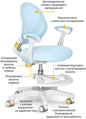 Спинка из дышащего материала Air отлично подходит на летний период. Ее ортопедическая форма обеспечивает правильное формирование осанки ребенка.