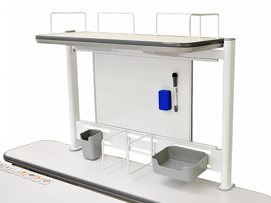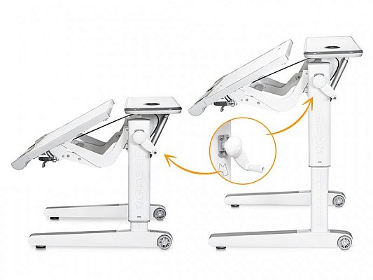 С помощью специальной ручки можно регулировать высоту рабочей части столешницы. Заданная высота устанавливается независимо от высоты всей конструкции стола.