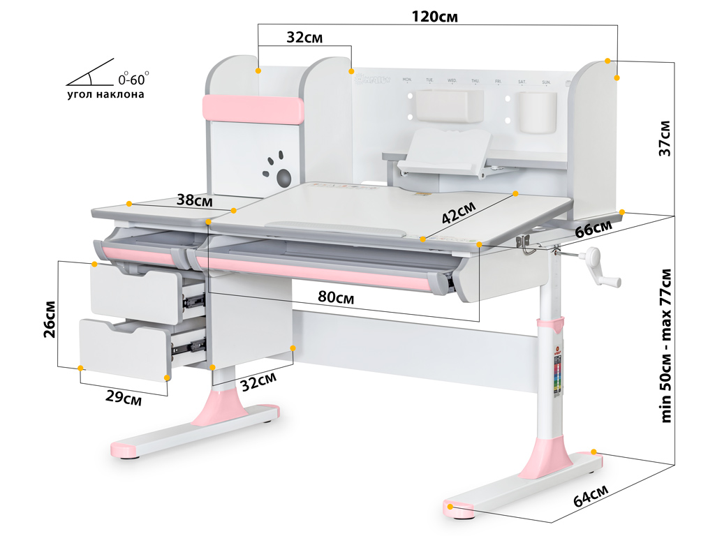 Наличие съемного прорезиненного барьера на столешнице предотвращает скатывание предметов во время выполнения домашнего задания.