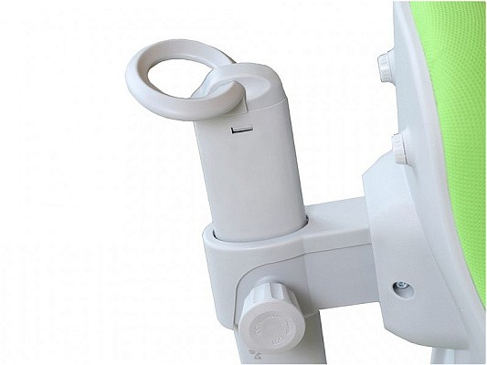 Спинка кресла регулируется по высоте, установленная высота надежно фиксируется специальным винтом. На несущей трубе есть ростовая разметка для того, чтобы отрегулировать высоту спинки в соответствии с ростом ребенка.