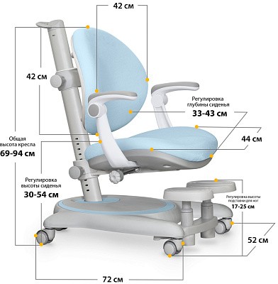 Глубина сиденья регулируется ручкой -фиксатором. Кресло подойдет для детей от 3х лет до взрослого возраста