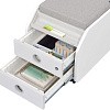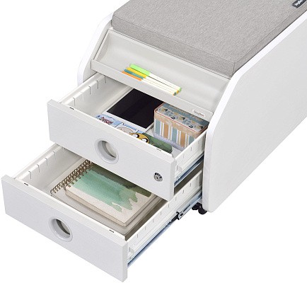 • Мобильная тумба SingBee включает в себя 2 больших выдвижных ящика. Например книги, альбомы для рисования, тетради без проблем вмещается в органайзеры. При необходимости ящики можно закрыть на замок. А также тумбой может пользоваться как ребёнок так и взрослый человек.