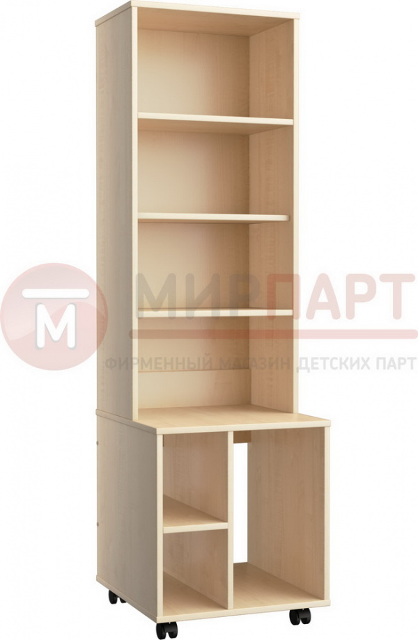 Открытый стеллаж СМД-03-01 является одним из элементов модульной детской стенки, центром которой станет учебная зона в виде растущей парты Деми. Именно поэтому в нижней части его конструкции предусмотрена удобная ячейка для установки системного блока компьютера, который наверняка понадобится малышу в старших классах. Нижняя часть стеллажа представляет собой ячейки различной величины, который прекрасно подходят для хранения крупных предметов, которые часто используются ребёнком. Верхняя же наоборот имеет вполне классический вид - четыре просторных открытых полки. Они идеально подходят для размещения детской библиотеки или же экспозиции игрушек, поделок, моделей. В любом случае, рядом с рабочим местом Вашего малыша должен быть уголок, где все любимые вещи ждут своего владельца.