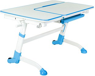 Сама столешница разделена на две части: рабочую зону, которая может наклоняться, и стационарную. Девяти ступеней регулировки наклона достаточно, чтобы подобрать удобное положение для любой деятельности: чтения, рисования, черчения и письма. На неподвижной части крышки в это время можно поставить стаканчик с водой, офисный органайзер, положить учебные пособия.