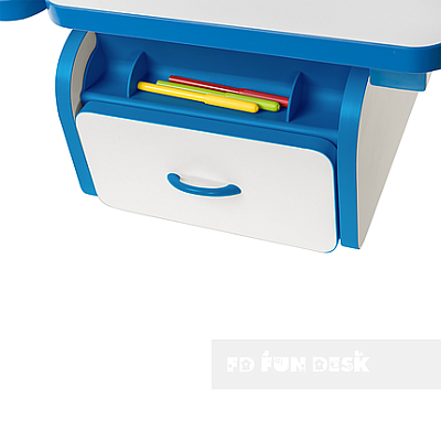 «ФанДеск» могут регулировать высоту парты под рост ребенка, а столешница может изменять угол наклона. Каждую модель можно оборудовать дополнительными аксессуарами. Парта «FunDesk» имеет множество ящиков для хранения канцелярских принадлежностей и тетрадей.